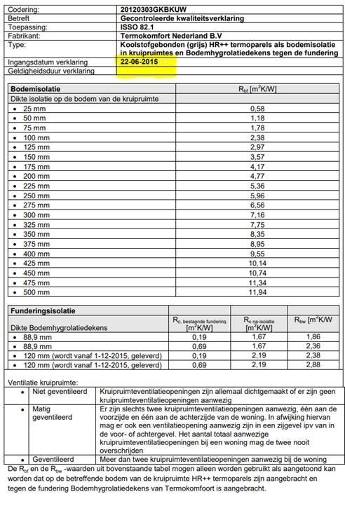 Van alle Termokomfort producten met Bodemisolatietoepassing kunt u de juist geldende gelijkwaardigheidsverklaringen terugvinden bij Bureau CRG.